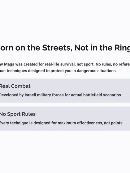 Combat System, Not Sport - Krav Maga is not about rules - it's about real-world survival. We prep you for anything, anyone.