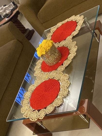 For festivals, I go all out. Christmas gets its own set of wine bottle covers, cute tree ornaments, and themed mats. Diwali? Just pick from my bright, bold runners and crochet floral placemats to add proper festive feels.