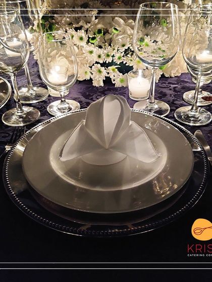 - Linen: White table runners and artistically folded linen napkins.
