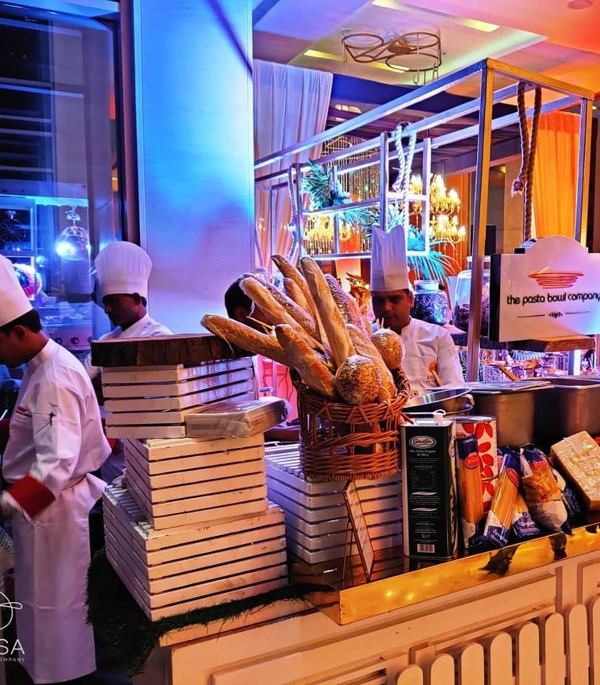We move beyond the traditional buffet by creating interactive mini-restaurants at your event. Guests can engage with our chefs as they prepare dishes like fresh pasta, sizzling satays, wood-fired pizzas, and steaming dumplings right before their eyes.