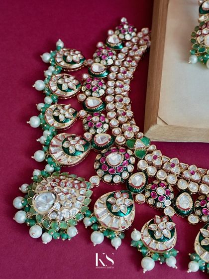 I make handcrafted bridal and wedding jewellery in classic and modern styles, where you can choose designs, stone colours, and get complete sets for the whole family, all made by skilled artisans in India.