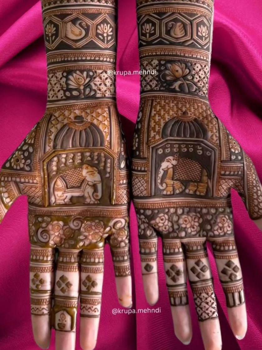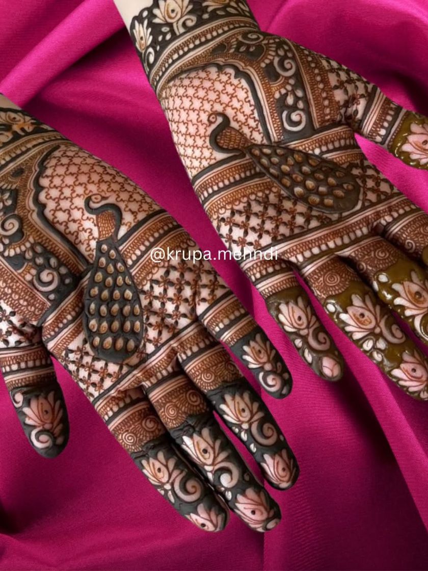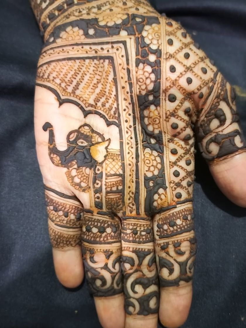 I love working with timeless motifs like peacocks, elephants, and lotuses, which are the soul of traditional mehndi. I also enjoy creating modern, minimalist, and fancy floral designs for a chic and contemporary look.
