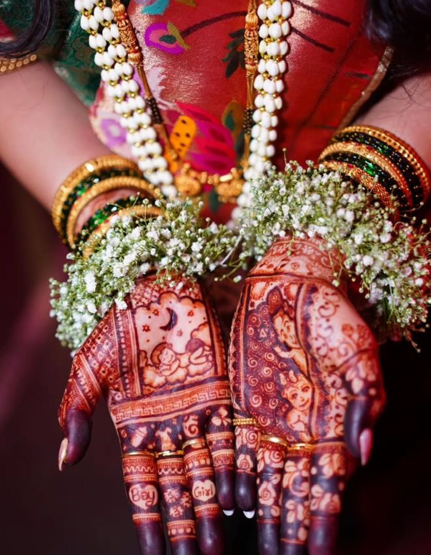 Celebrate the journey to motherhood with special godh bharai mehndi. I design cute and meaningful patterns, like a sleeping baby, cradles, or "Badhai Ho!" to bless the mama-to-be. I use only 100% organic paste, which is completely safe and naturally cooling.