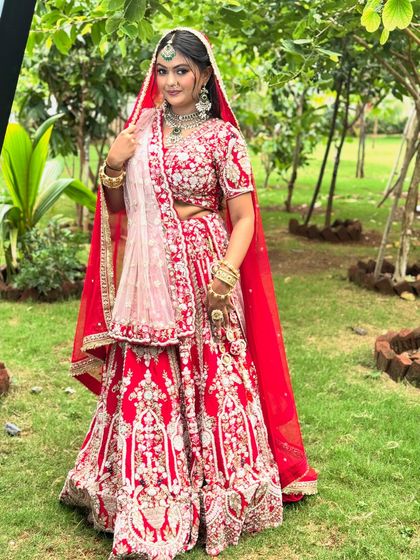 I do bridal makeup that looks natural and lasts all day, with full hair styling, saree or lehenga draping, and custom touches for your culture.