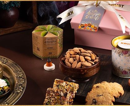 We offer luxury gift boxes perfect for special occasions and festivals. Our signature boxes feature premium items like Belgian chocolates, roasted almonds, and festive candles. The "Almond Tea Cake Gifting Box" and "Pretty Pink Festive Indulgence Box" are among our most popular offerings.