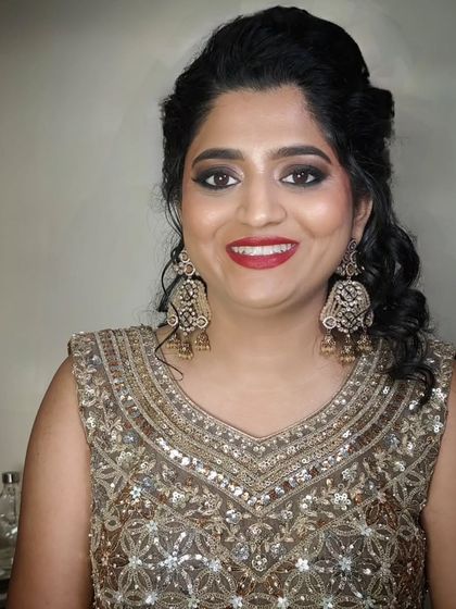 Let's turn up the glam for your evening events. This gallery is all about creating stunning looks for your Sangeet, Cocktail, and Reception parties. From dramatic smokey eyes and bold lips to sophisticated updos and vintage waves, these styles are designed to make you stand out.