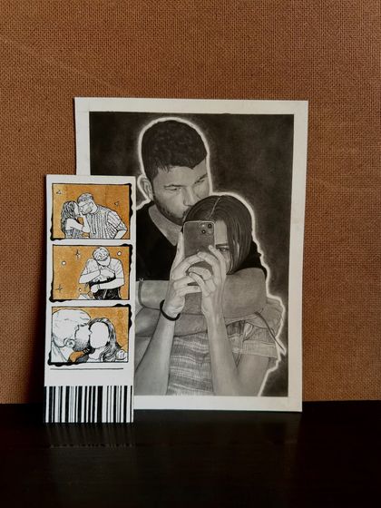 I make custom art using coffee painting, graphite, and charcoal, like portraits, photo strips, memory collages, and even hand-paint on jackets, all based on your ideas or photos.