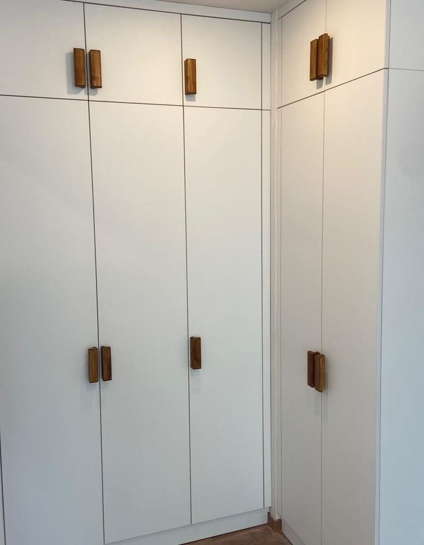Embrace timeless elegance with our wardrobes finished in natural wood veneers and premium laminates that mimic the texture of real wood. These designs bring warmth and classic style to any bedroom, backed by the durability of modern German hardware.