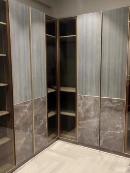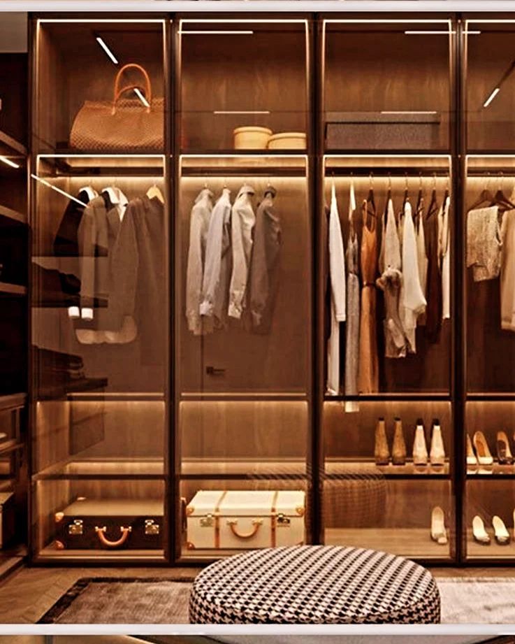 Experience the ultimate in luxury with our walk-in closets and glass wardrobe systems. We use materials like smoked, fluted, or clear glass set in sleek metal profiles, complete with integrated lighting to create a stunning display for your clothing and accessories.