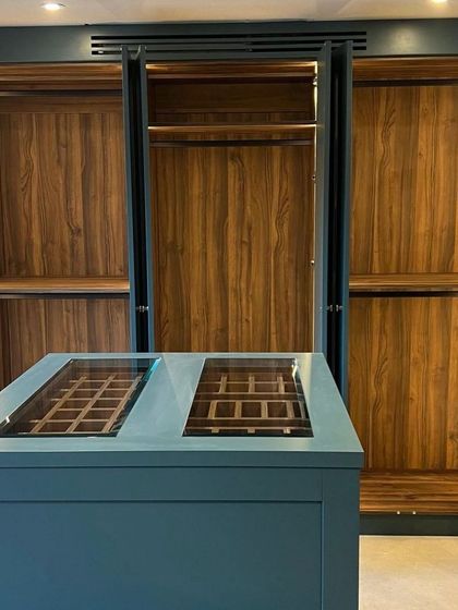 Experience the ultimate in luxury with our walk-in closets and glass wardrobe systems. We use materials like smoked, fluted, or clear glass set in sleek metal profiles, complete with integrated lighting to create a stunning display for your clothing and accessories.