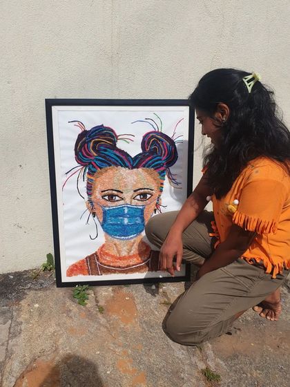 This is not your usual painting. I use colourful threads to create textured, vibrant portraits and designs that have a unique 3D quality. These framed pieces make a truly standout addition to any wall.
