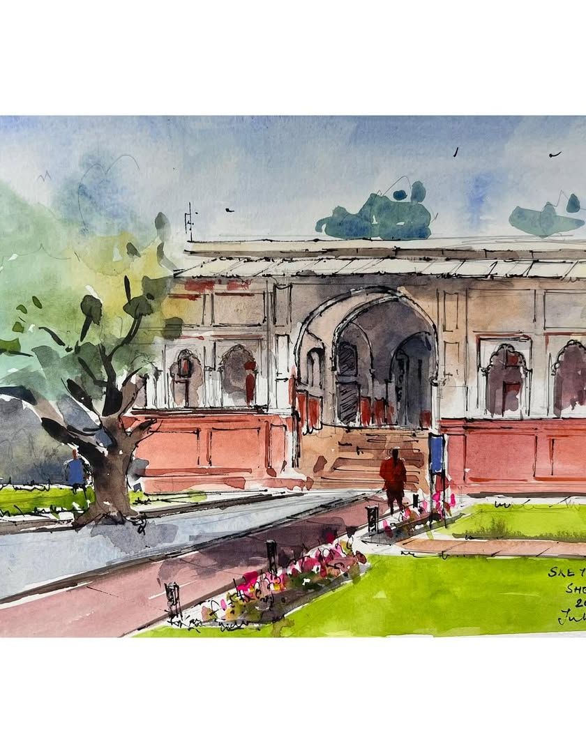I love capturing the crazy, beautiful energy of Delhi in my sketchbooks. From the quiet grandeur of ancient tombs to the chaotic charm of its bustling streets, every corner has a story. I often go out with the Urban Sketchers Delhi group, and we spend our Sundays documenting this incredible city with ink and watercolor.