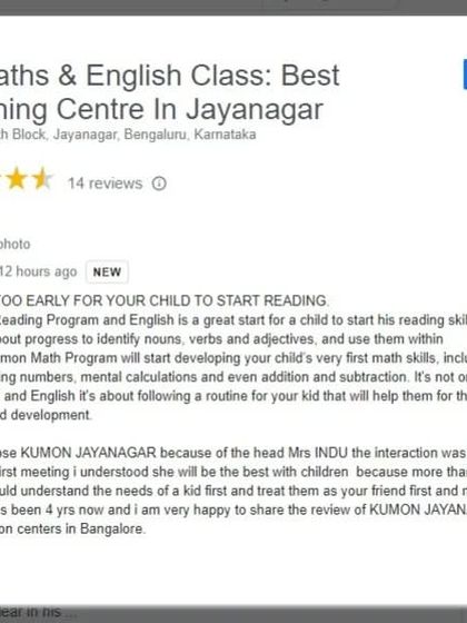 Namaskara! We’re Kumon Jayanagar, right here in Bangalore. Kids come in shy, sometimes unsure, and we get to see them bloom - not just in maths or English but in how they think. Parents say we treat children like friends, and honestly, that’s true. For us, it’s about understanding each child, not just chasing marks. We celebrate Deepavali, Christmas, and Kannada Rajyotsava together. Kannadadalle namma hridaya, namma hemme! (Kannada is in our heart, our pride!)