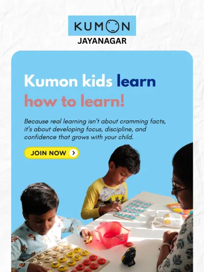 Namaskara! We’re Kumon Jayanagar, right here in Bangalore. Kids come in shy, sometimes unsure, and we get to see them bloom - not just in maths or English but in how they think. Parents say we treat children like friends, and honestly, that’s true. For us, it’s about understanding each child, not just chasing marks. We celebrate Deepavali, Christmas, and Kannada Rajyotsava together. Kannadadalle namma hridaya, namma hemme! (Kannada is in our heart, our pride!)