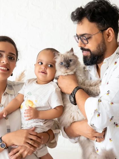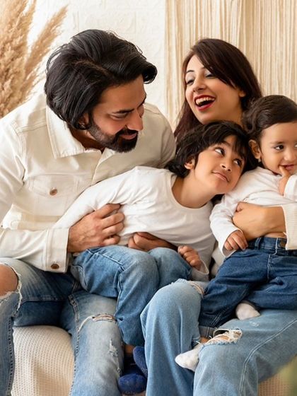 I photograph families in Gurgaon and Delhi-NCR, capturing real moments and natural connections in studio or outdoor settings, with options for including siblings, pets, and all family members.
