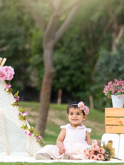 I handle everything for your baby's first birthday shoot, from props and outfits to capturing both posed and candid moments in my studio or outdoors, so you get real milestone portraits without any hassle.