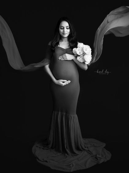 You can pick from my collection of flowing maternity gowns or just wear what feels right. I'll guide you on poses, but if you feel awkward - that's normal, and I've got you. Family maternity photography is always welcome - bring your partner, older kids, whoever you want in the frame.
