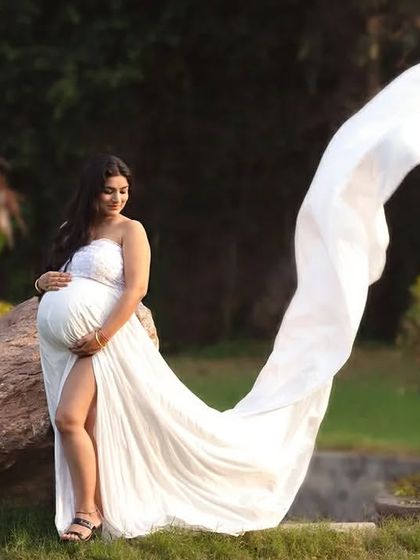I conduct outdoor maternity shoots across Delhi-NCR parks and gardens, specializing in using the soft, warm light of the golden hour just before sunset. These sessions capture a natural, romantic feel amidst lush greenery.