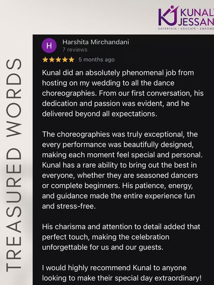 Don't just take my word for it. Here’s what my amazing clients have to say about their experience. From heartfelt video testimonials captured right after an event to detailed written reviews, their feedback is the best measure of my success as a choreographer and host.