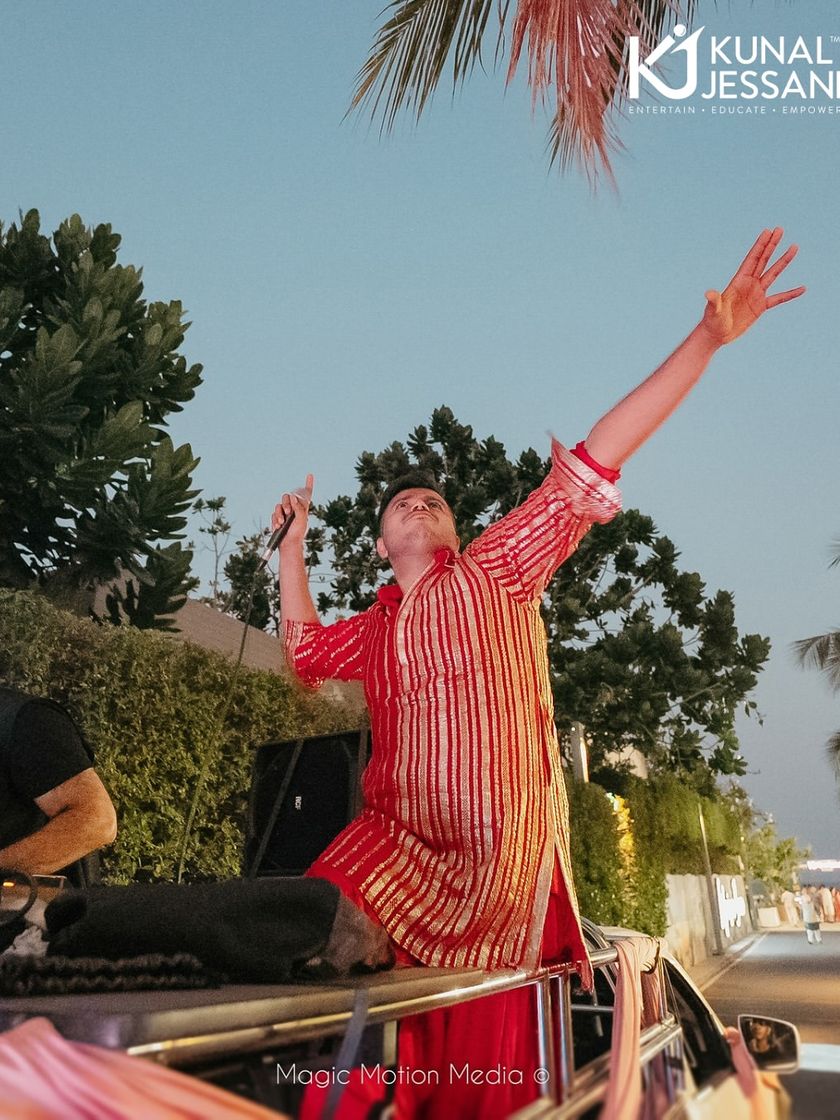 Your venue, my energy. I travel anywhere you call me, from Goa and Jaipur to international locations like Thailand, to make your destination wedding a massive success. I specialize in seamlessly blending different cultures for 2-States or Indo-foreign weddings, ensuring every guest feels included through bilingual hosting and culturally-aware entertainment.