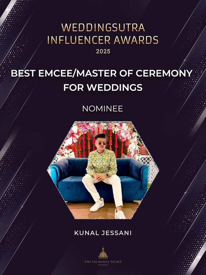 I am honored to be recognized by my peers in the wedding industry. My nomination for 'Best Emcee for Weddings' at the prestigious WeddingSutra Influencer Awards is a testament to my dedication, passion, and the trust my clients place in me.