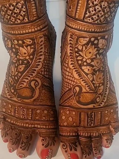A bride's beauty is in every detail, and that includes her feet. I create beautiful and intricate mehndi designs for the feet that complement your hand mehndi. Whether you want a heavy, full-coverage design or a simple, elegant pattern, I will make sure your feet look just as stunning.