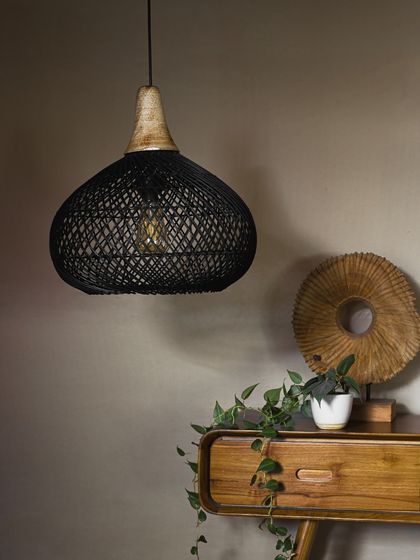For a more contemporary statement, I experiment with color and form. This selection includes bamboo lights finished in bold black and striking two-tone patterns, perfect for modern interiors that require a touch of drama.