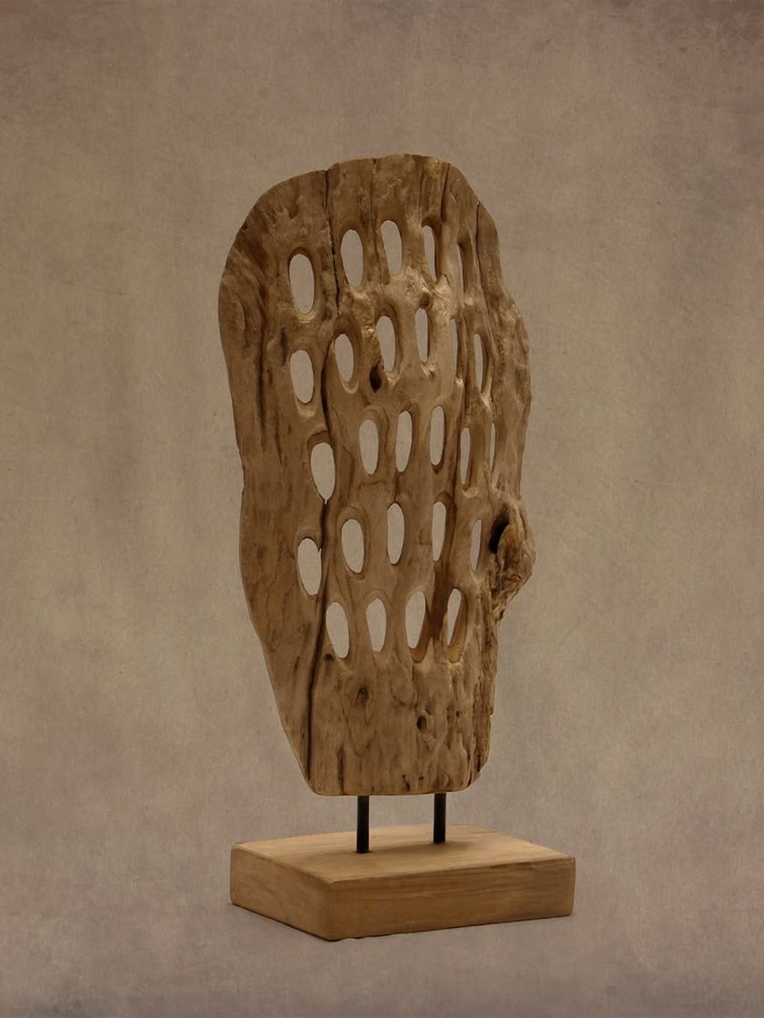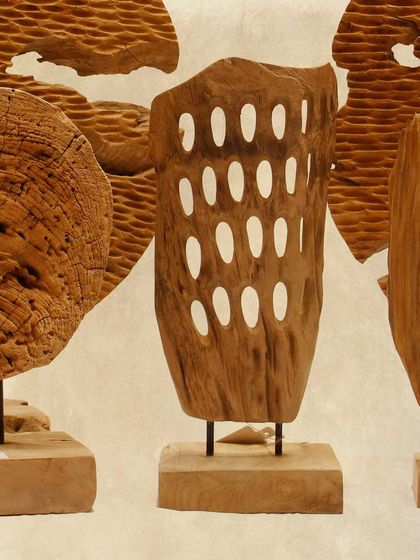 Each of these pieces is a conversation starter, individually handcrafted from reclaimed or specially selected teak. This collection includes abstract sculptures, spiritual idols, and decorative bowls that bring a natural, artistic element to any surface.