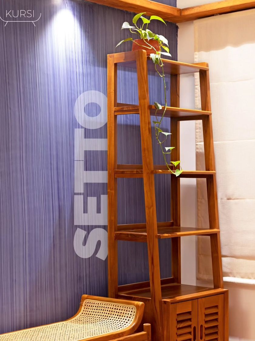 I design functional pieces to organize your space with elegance and purpose. This collection includes solid teak bookshelves, entryway cabinets, and TV consoles, often featuring details like louvered doors and rattan panels.