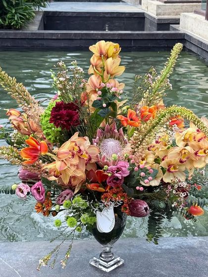 I create luxury floral couture for homes and events, specializing in bold, statement installations. My work blends Indian and international elements, embracing beautiful chaos to create something truly exquisite.