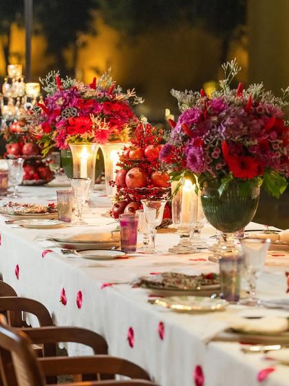 I design for all kinds of milestones. Weddings, brand launches, Diwali, Christmas - I mix tradition with a bit of glamour. Grazing table florals, flowing runners, and centerpieces that pack a punch. I sometimes throw in lemons or driftwood if the mood fits.