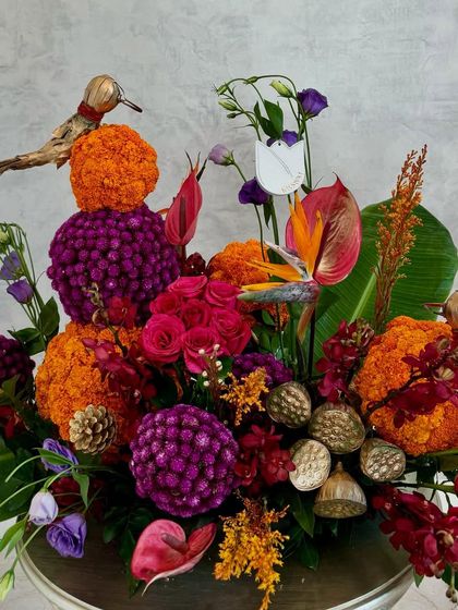 Indian with International Flair - I mix marigold, tuberose, orchids, and delphiniums for bold, artistic, Indian floral couture.