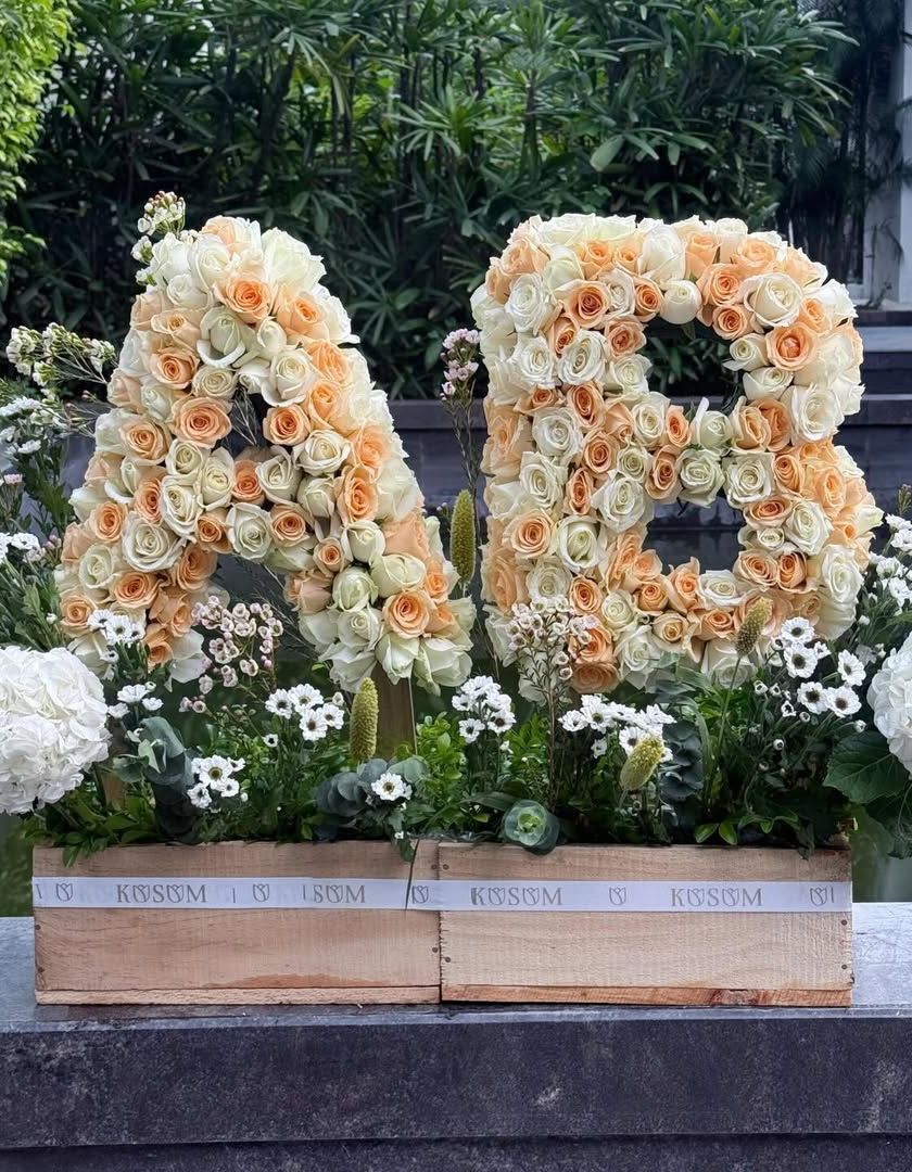 I transform flowers into personalized art to celebrate life's biggest moments. From romantic heart shapes and custom initials for anniversaries to adorable teddy bears for baby announcements, these floral sculptures are crafted to be unforgettable centerpieces for your special day.