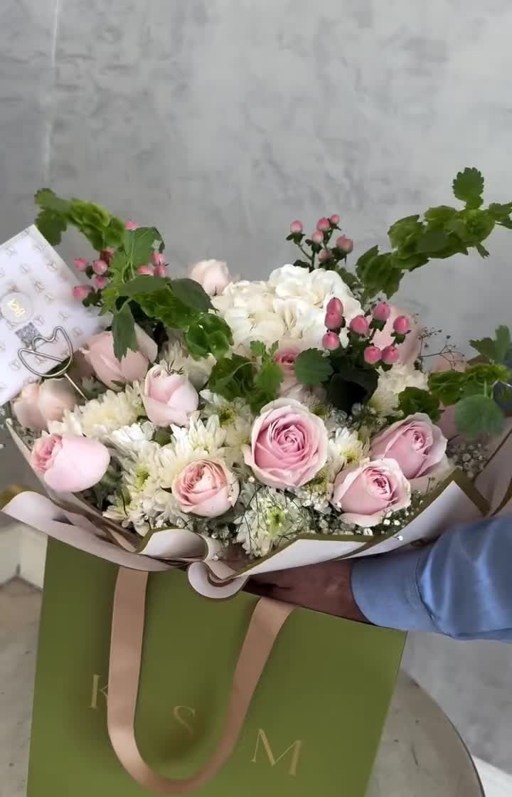 My answer to modern, effortless gifting. I design a lush, hand-tied bouquet and nestle it into my signature green tote, creating a chic and convenient gift that’s perfect for dinner parties, thank yous, or any time you want to make someone’s day.
