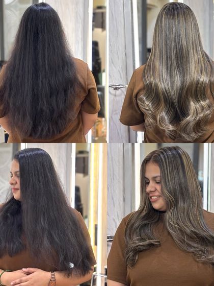 All-in-one Hair & Beauty Services - Haircuts, natural balayage hair color, hair botox treatment for curly hair, glossy hair transformation, makeup, nail art extensions.