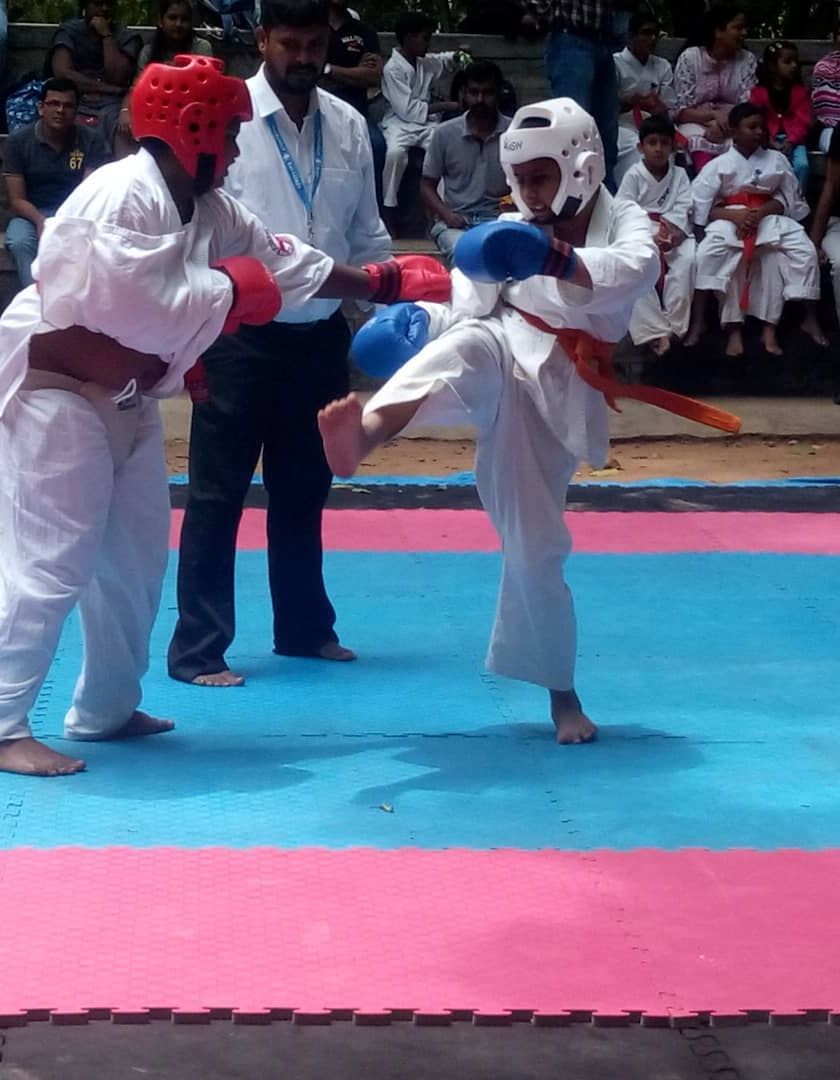 I organize and participate in various competitions to test our skills under pressure. These include local events like the All Bangalore Open, specialized Lowkick Tournaments, and even online Kata championships for remote participation.