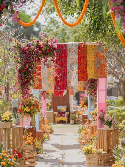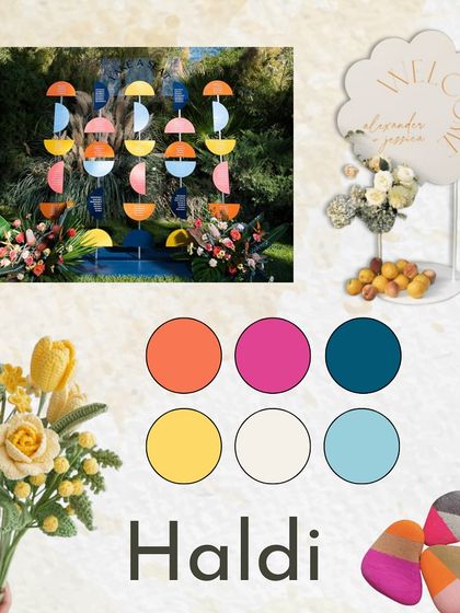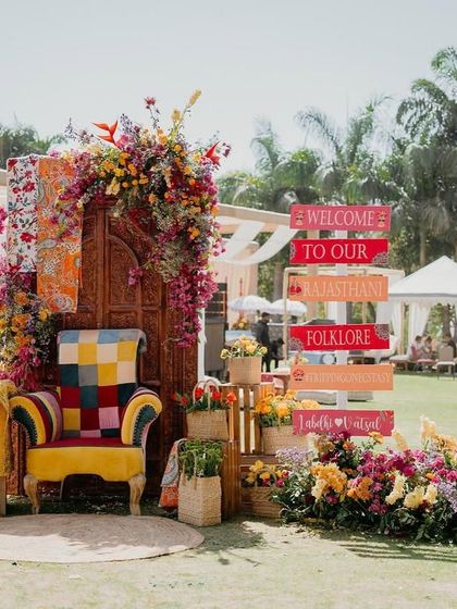 These are the moments of pure joy and color. I love creating spaces that burst with personality, whether it's a sun-drenched Haldi with playful props and citrusy cheer, or a contemporary Rajasthani mela with rich textiles and interactive corners for your guests.