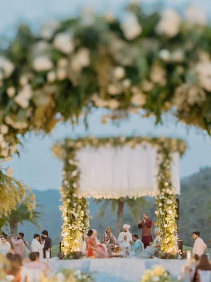 The mandap is more than a structure; it's a sacred space where promises are made. I specialize in creating bespoke mandaps that are deeply personal, whether it's a modern arch inscribed with meaningful Sanskrit verses, a lush garden setup overflowing with white florals, or a regal Sabyasachi-inspired design. Each ceremony is designed to feel divine and look breathtaking.