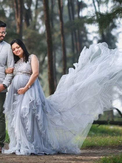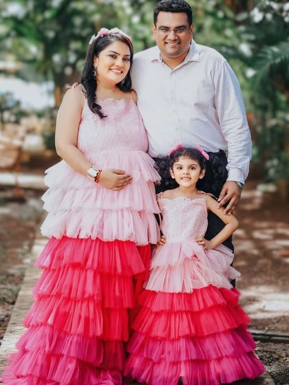 We rent maternity dresses and gowns for photoshoots and events, with adjustable sizes, pan-India delivery, and options for matching family outfits or custom pieces.