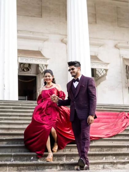 I help you create stunning, coordinated looks for your pre-wedding photoshoot without the stress of buying multiple outfits. My collection includes dramatic trail gowns for her and sharp, complementary blazers and suits for him. I offer outfits perfect for any theme, from romantic beach shoots to grand, architectural backdrops.
