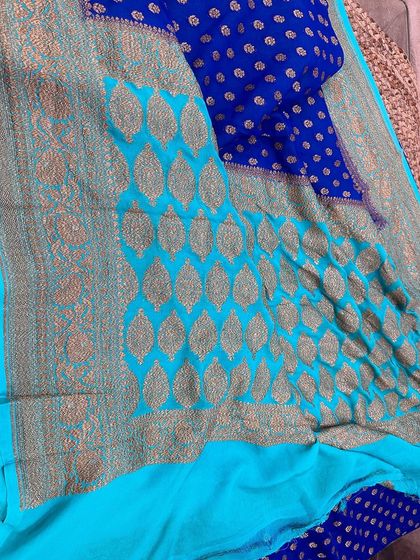 We specialize in crafting exquisite designer sarees using premium fabrics like Banarasi Crepe, Raw Mango, Pure Khaddi Georgette, and Kathan Silk. Our collections feature rich pallus, intricate gold patterns, and unique color combinations.