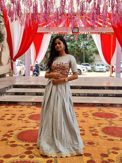 I design custom lehengas, half-sarees, and Indo-Western sets for weddings, festivals, and parties. From traditional Kalamkari silks to modern crop tops with dhoti pants, I can create a unique outfit that fits your style.