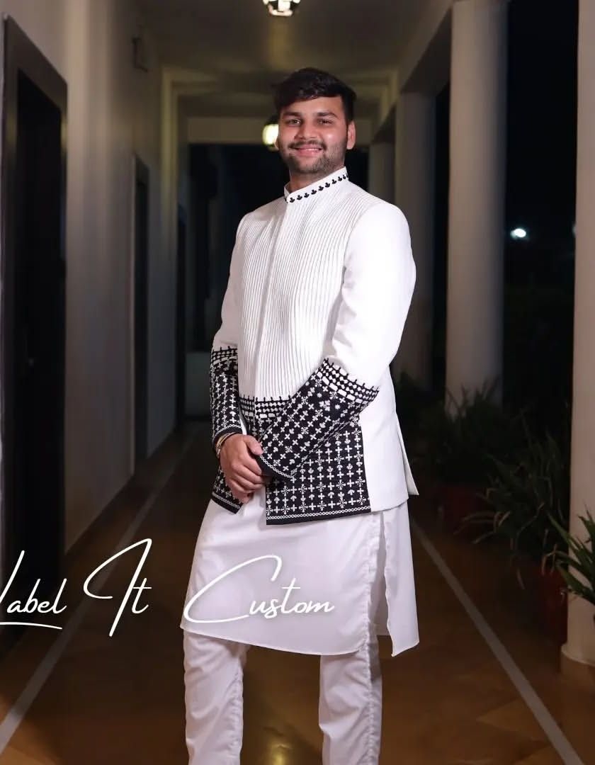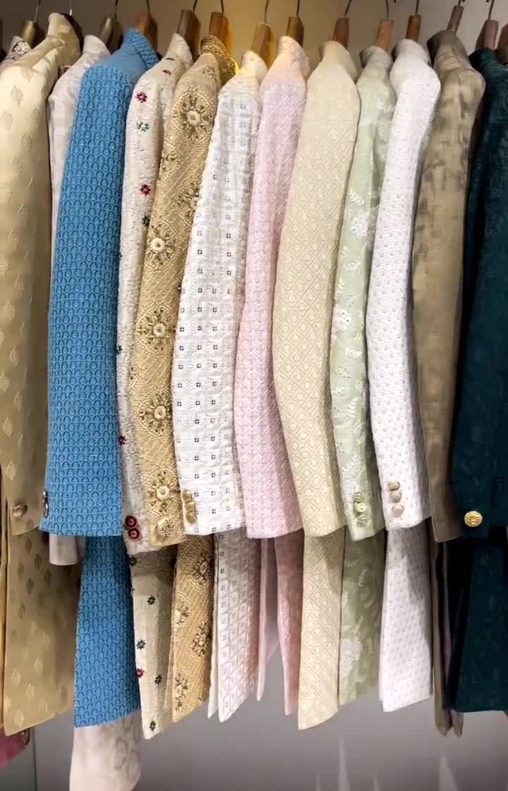 Perfect for pre-wedding functions like Haldi, Mehendi, or Sangeet, my kurta sets are all about comfort and style. I design them with versatile Nehru jackets (Bandis) or contemporary open shrugs in a range of fabrics and colors. These are also great options for the groom's squad or wedding guests.