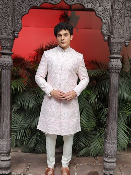 This is my signature collection for the main wedding day. I design each sherwani to feel like royalty, whether you want a classic ivory look with delicate embroidery or a more unique, heavily embellished piece. We focus on a perfect fit and luxurious fabrics to ensure you feel nothing less than majestic.