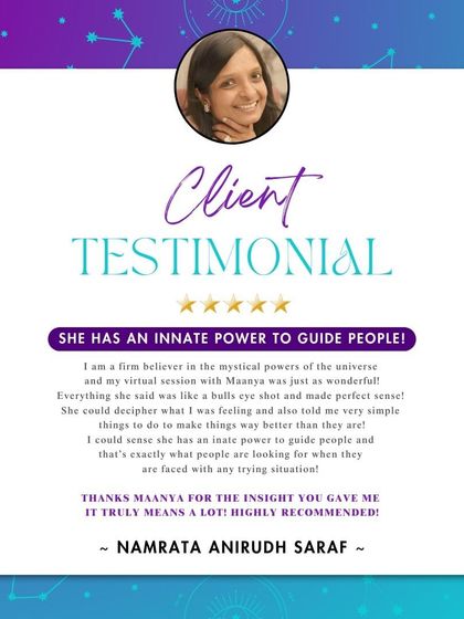 People call me the Lady of Tarot but I’m just Maanya, living in Bangalore, speaking my truth. Been at this for 20+ years, guiding thousands. Tarot’s not some magic future-predictor, it’s a mirror. Shows you your patterns, that one emotion you keep dodging, the blind spot. I don’t do silence—whether in the street or in your soul. I’m here to help you break it, find your voice, and step into your own power. That’s my jam.