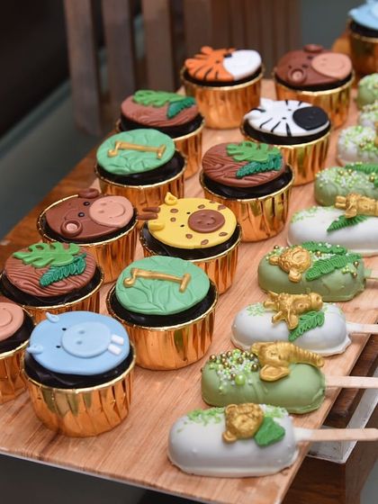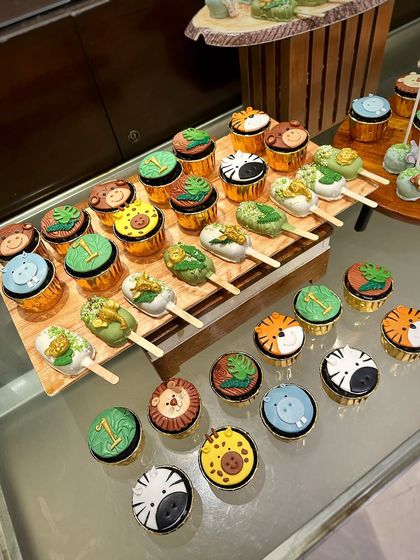 I design and set up themed dessert tables with custom cakes, cupcakes, and treats that match your party, including egg-free options and a full table arrangement.