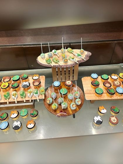 I design and set up themed dessert tables with custom cakes, cupcakes, and treats that match your party, including egg-free options and a full table arrangement.