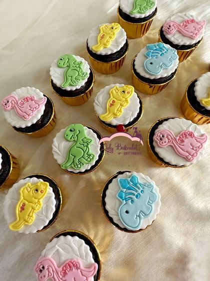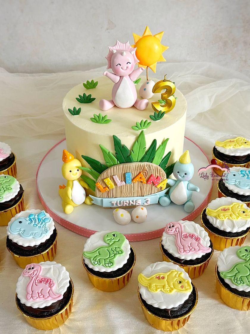 Perfect for the little animal lover in your life, these dessert sets feature adorable and friendly characters. Whether it's a 'Dino-mite' party with colorful dinosaurs or another creature feature, I make sure the cake and matching cupcakes are roar-some.