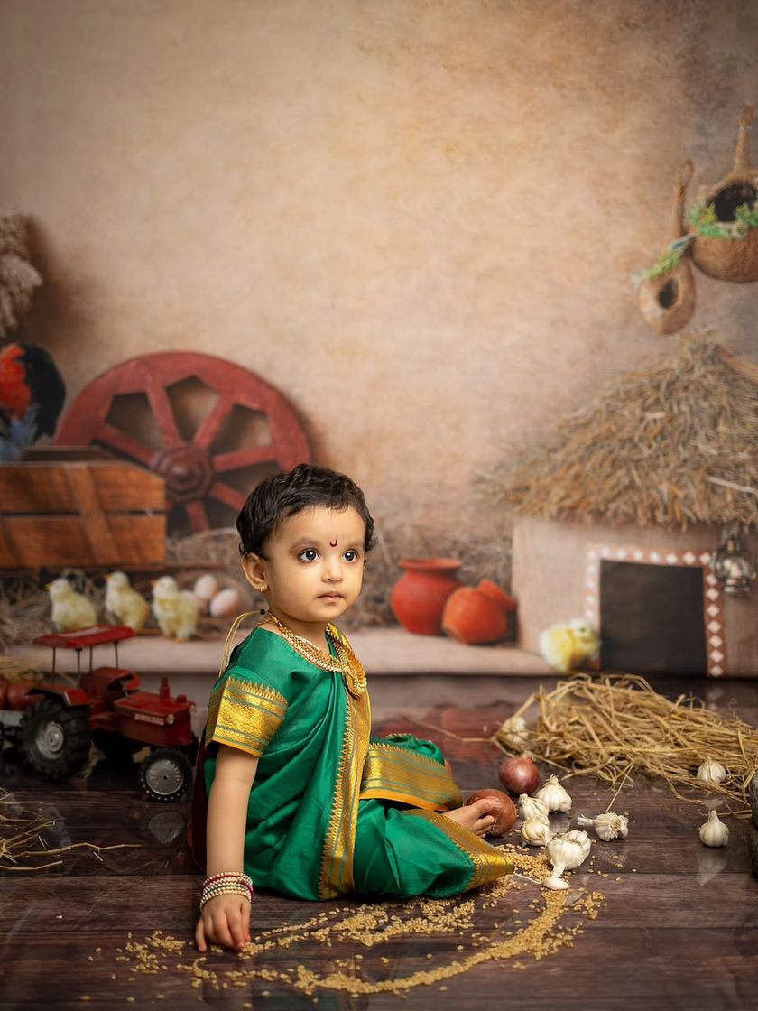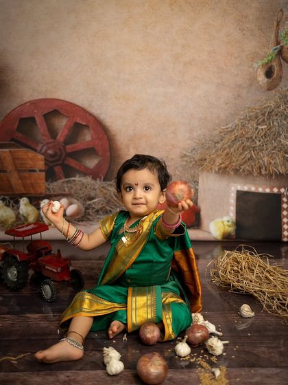 I love creating photoshoots that celebrate our rich Indian heritage. From rustic Maharashtrian village setups to divine themes like Krishna, Mahadev, and festive Diwali sessions, I provide all the traditional outfits and props to create these special memories.