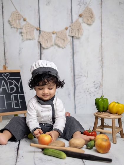 My Navi Mumbai studio is filled with creative themes to bring your child's personality to life. Whether it's a future football star, a tiny boss, a jungle explorer, or a little chef, I have the outfits and backdrops to make it happen.